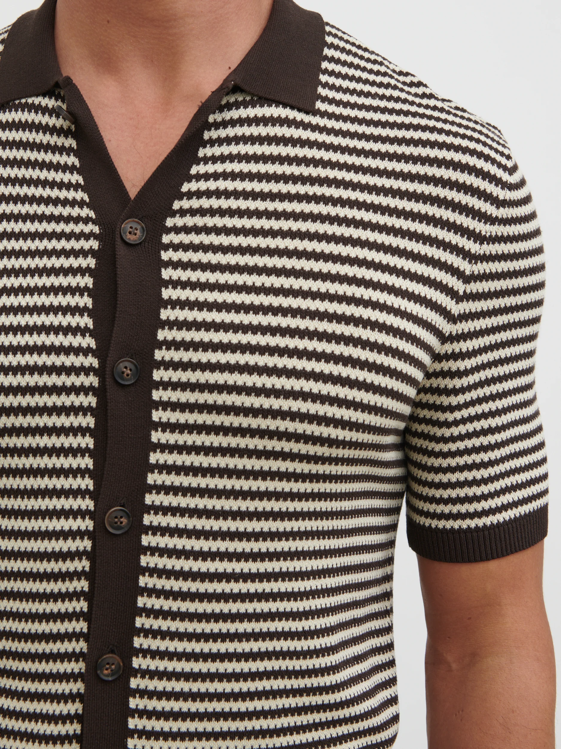 Aidan Knit Shirt - Chocolate Brown and Cream