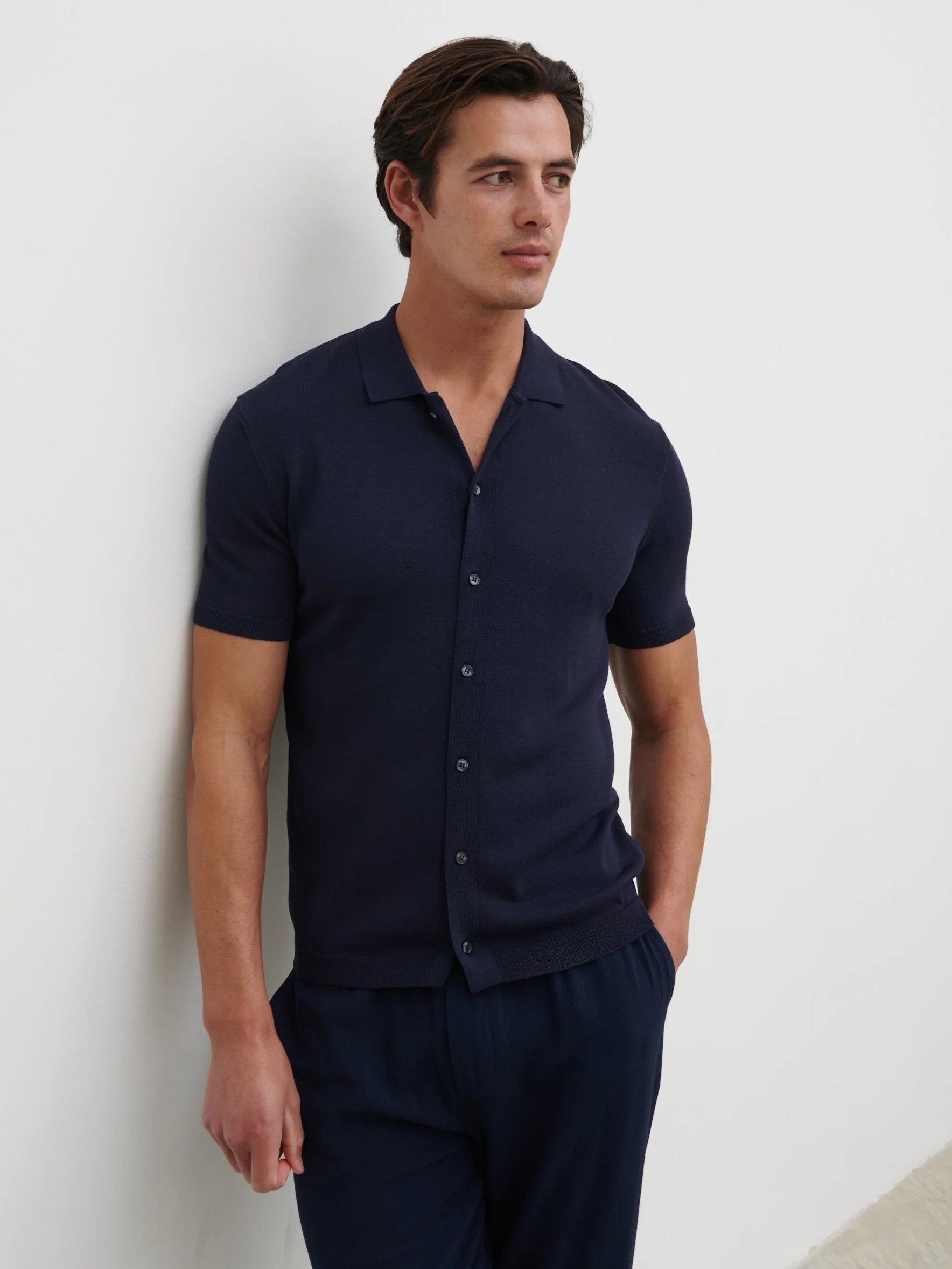 Angus Lightweight Button Down Knitted Shirt - Navy