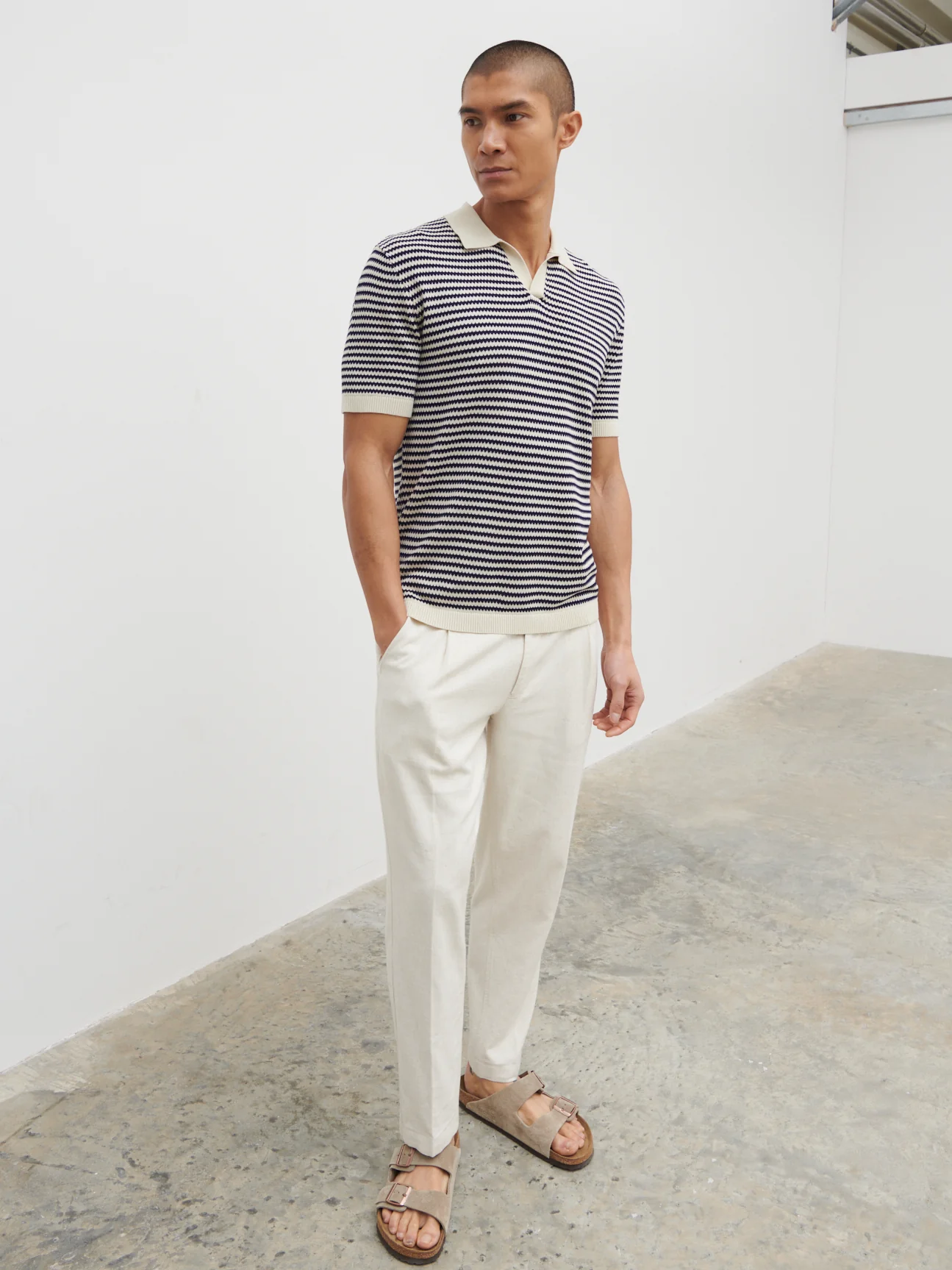 -70%Jacob Stripe Knit Polo - Navy and Cream—