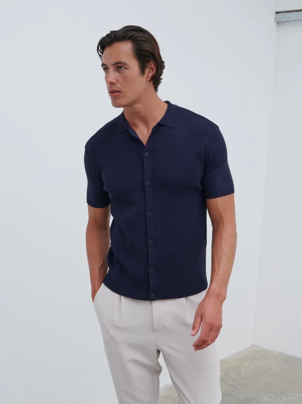 Jasper Button Down Knitted Shirt - Navy—
