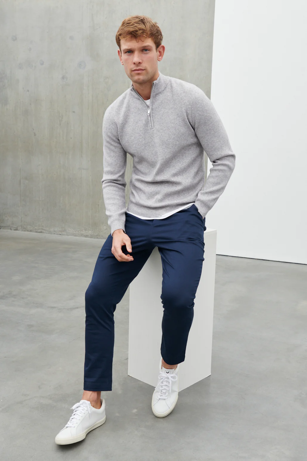 Logan Grown On Neck Half Zip Jumper - Grey Marl